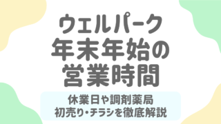 年末年始 【2026年最新版】ウェルパーク年末年始の営業時間は?調剤薬局や初売り情報も徹底解説! 年末年始のウェルパークは営業している?調剤薬局や通販はいつから再開?この記事では、2025〜2026年のウェルパーク年末年始の営業時間、休業日、混雑ピーク、初売り情報、チラシの確認方法まで徹底解説!予定を立てる前にチェック必須! 2025.12.25 年末年始